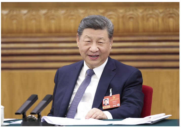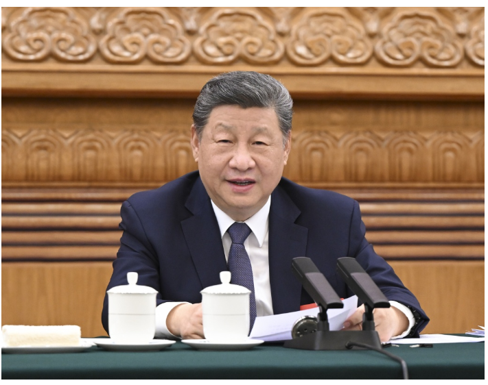 3月5日下午,中共中央总书记、国家主席、中央军委主席习近平参加他所在的十四届全国人大四次会议江苏代表团审议。新华社记者 谢环驰 摄