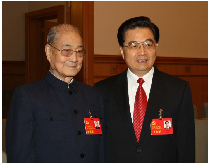 2007年10月21日,在党的十七大闭幕前,胡锦涛同志同宋平同志在一起。新华社发