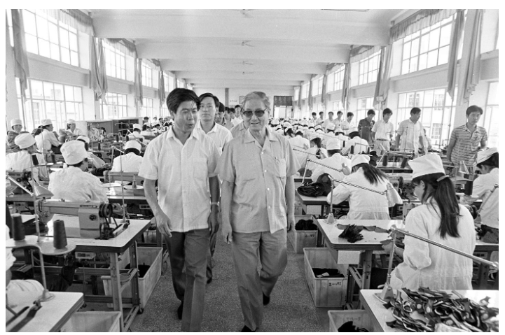 1990年8月14日,宋平同志(右)在山东省威海市文登区考察。新华社发