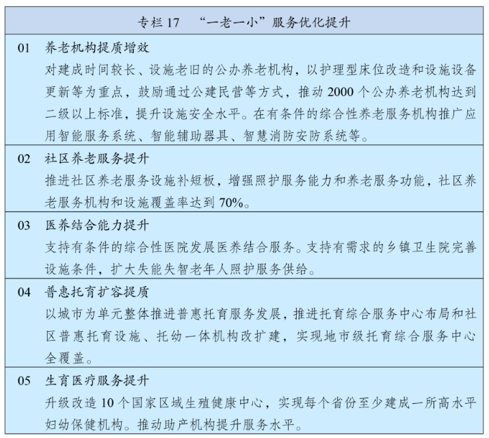 坚持儿童优先发展,切实保障儿童生存权、发展权、受保护权和参与权。推进儿童近视、超重肥胖和孤独症等早筛查早干预。提高儿童医疗保健服务水平,丰富儿童用药品种。加强困境儿童关爱服务,推进流动儿童、留守儿童分类帮扶,有效提升福利保障水平。完善儿童早期发展服务。制定实施儿童伤害防控行动计划,强化未成年人违法犯罪预防和治理,有效防治学生欺凌。加强未成年人网络保护,拓展网络育人空间和阵地。推进儿童友好建设,营造关心关爱下一代的社会环境。